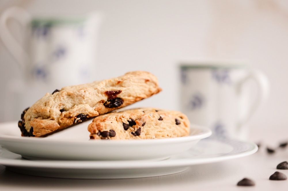 A light, flaky scone dotted with premium dark chocolate chips throughout.